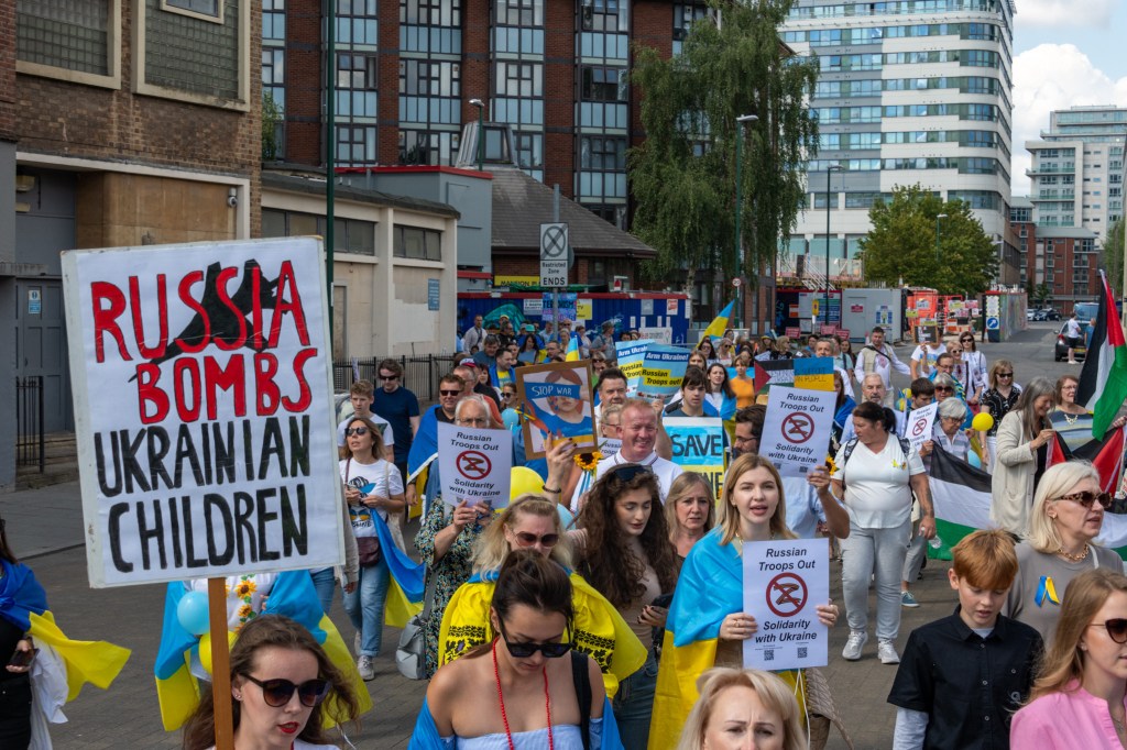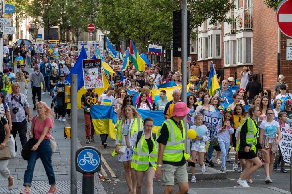 Today (August 27th) around 350 people of all ages, consisting of local residents, the local Ukrainian community and recently arrived refugees fleeing from war held a march and rally to raise awareness of the ongoing conflict in Ukraine and to highlight the continued resolve of Ukrainians and people around the world to overcome Putin’s oppression.