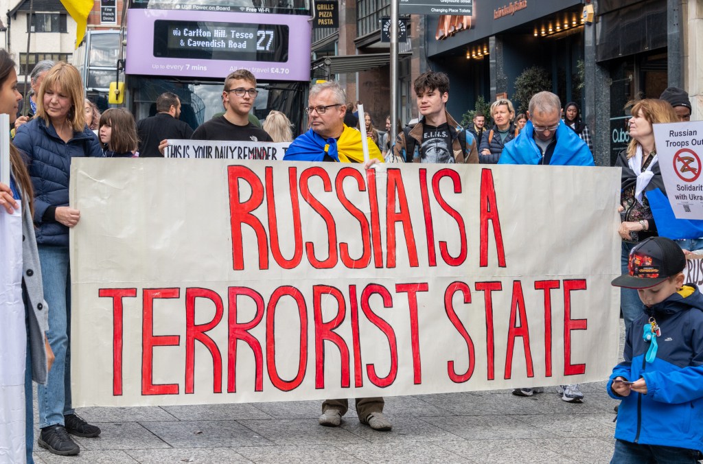 A march and rally organised by Nottingham Ukraine Solidarity Campaign (NUSC) attended by about 100 people was held today to ask the government for the continued supply of arms, vehicles and other supplies to Ukraine. Marchers were especially motivated by the ongoing sham referendums in occupied territories and the potential escalation in the war due to recent announcements by Russian president Vladimir Putin.